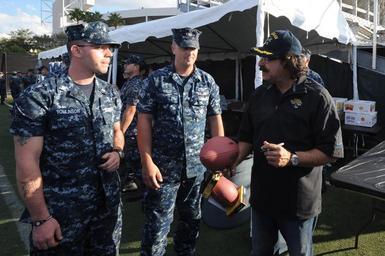 | Keywords: Flickr - Official U.S. Navy Imagery - Owner of the Jaguars signs a football..jpg JACKSONVILLE Fla Nov 6 2012 Shahid Khan owner of the Jacksonville Jaguars right signs sports memorabilia for Sailors following a Jaguars practice More than 300 Sailors and Marines gathered in the Jaguars practice stadium to meet the players as part of the city of Jacksonville's Week of Valor and in preparation for the upcoming Navy-Marine Corps Classic The game honors veterans active and reserve service members and military families America's away team the Navy and Marine Corps are reliable flexible and ready to respond worldwide on above and below the sea as well as ashore Join the conversation in social media using BBallOnDeck U S Navy photo by Mass Communication Specialist 2nd Class Gary A Prill/Released 121106-N-RB564-075 Join the conversation http //www facebook com/USNavy www facebook com/USNavy http //www twitter com/USNavy www twitter com/USNavy http //navylive dodlive mil navylive dodlive mil http //www flickr com/photos/usnavy/8169497217/ Owner of the Jaguars signs a football 2012-11-06 16 44 http //www flickr com/people/56594044 N06 Official Navy Page from United States of America Mass Communication Specialist 3rd Class Dylan Miles/U S Navy U S Navy photo PD-USGov-Military-Navy Official U S Navy Imagery http //flickr com/photos/56594044 N06/8169497217 2012-11-11 23 10 07 cc-by-2 0 Images from United States Navy to check |