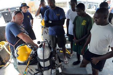 | Keywords: Flickr - Official U.S. Navy Imagery - A U.S. navy diver explains the functions of a KM 37 diving helmet to Bahamian divers..jpg KINGSTON Jamaica June 11 2012 Navy Diver 1st Class Brian Mounton assigned to Mobile Diving and Salvage Unit MDSU 2 Company 2-1 explains the functions of a KM 37 diving helmet to Bahamian divers Company 2-1 is currently participating in Navy Dive-Southern Partnership Station 2012 a multinational partnership engagement designed to increase interoperability and partner nation capacity through diving operations U S Navy photo by Mass Communication Specialist 2nd Class Kathleen A Gorby/Released 120611-N-BJ279-182 http //www flickr com/photos/usnavy/7372192568/ A U S navy diver explains the functions of a KM 37 diving helmet to Bahamian divers 2012-06-11 13 04 http //www flickr com/people/56594044 N06 Official Navy Page from United States of America MC2 Kathleen Gorby/U S Navy U S Navy photo PD-USGov-Military-Navy Official U S Navy Imagery http //flickr com/photos/56594044 N06/7372192568 2012-11-13 07 52 21 cc-by-2 0 Images from United States Navy to check |