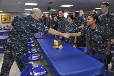 Keywords: Flickr - Official U.S. Navy Imagery - the U.S. Navy Surgeon General and Chief, Bureau of Medicine and Surgery shakes hands with a Sailor..jpg GUAM May 22 2012 Vice Adm Matthew L Nathan the U S Navy Surgeon General and Chief Bureau of Medicine and Surgery offers the traditional handshake giving Yeoman 2nd Class Cecilia Mitchell a coin on the mess decks of the Military Sealift Command hospital ship USNS Mercy T-AH 19 Nathan leads a global healthcare network of 63 000 Navy medical personnel around the world who provide high-quality health care to more than one million eligible beneficiaries Navy Medicine personnel deploy with Sailors and Marines worldwide providing critical mission support aboard ship in air under the sea and on the battlefield While in Guam Pacific Partnership is scheduled to gain more than 300 additional medical and engineering personnel from U S and partner nation militaries as well as non-governmental organizations U S Navy photo by Mass Communication Specialist 2nd Class Roadell Hickman/Released 120522-N-7441-002 Join the conversation http //www facebook com/USNavy www facebook com/USNavy http //www twitter com/USNavy www twitter com/USNavy http //navylive dodlive mil navylive dodlive mil http //www flickr com/photos/usnavy/7256480488/ the U S Navy Surgeon General and Chief Bureau of Medicine and Surgery shakes hands with a Sailor 2012-05-21 15 40 http //www flickr com/people/56594044 N06 Official Navy Page from United States of America Mass Communication Specialist 2ND Class Roadell Hickman/U S Navy U S Navy photo PD-USGov-Military-Navy Official U S Navy Imagery http //flickr com/photos/56594044 N06/7256480488 2012-11-13 13 57 55 cc-by-2 0 Matthew L Nathan United States Navy images Handshakes involving the military Women in the United States Navy
