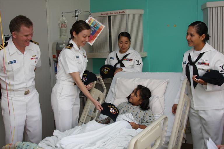 MAKE A MEME View Large Image Navy Imagery - Sailors give ballcaps at a children's hospital..jpg HOUSTON Texas Oct 23 2012 Lt Krystal L Roberts assigned to the aircraft carrier USS George H W Bush CVN 77 presents a navy ball cap to a patient at Texas Children ™s ...