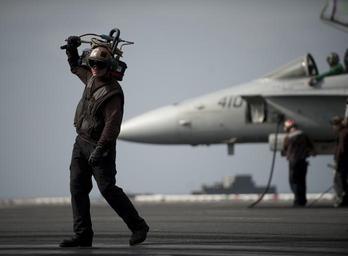 | Keywords: Flickr - Official U.S. Navy Imagery - A Sailor carries a hydraulic servicing unit on the flight deck..jpg ARABIAN SEA Jan 14 2012 A plane captain carries a hydraulic servicing unit on the flight deck aboard the Nimitz-class aircraft carrier USS Carl Vinson CVN 70 Carl Vinson and Carrier Air Wing CVW 17 are underway on a western Pacific deployment U S Navy photo by Mass Communication Specialist 2nd Class James R Evans/Released 120114-N-DR144-136 http //www flickr com/photos/usnavy/6731629803/ A Sailor carries a hydraulic servicing unit on the flight deck 2012-01-14 06 24 http //www flickr com/people/56594044 N06 Official Navy Page from United States of America MC2 James R Evans/U S Navy U S Navy photo PD-USGov-Military-Navy Official U S Navy Imagery http //flickr com/photos/56594044 N06/6731629803 2012-11-14 06 51 17 cc-by-2 0 F/A-18 Hornet on flight decks USS Carl Vinson CVN-70 flight deck |