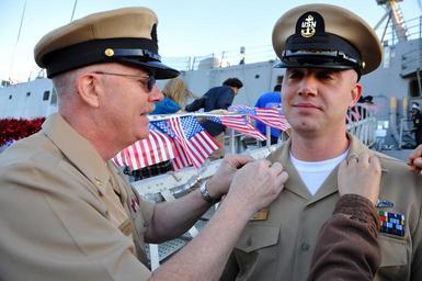 | Keywords: Flickr - Official U.S. Navy Imagery - Dad pins son to Chief..jpg MAYPORT Fla Dec 14 2011 Interior Communications Electrician James Whitehead is pinned as chief by his father retired Chief Machinist's Mate Jeff Whitehead during a homecoming celebration for the guided-missile destroyer USS Samuel B Roberts FFG 58 Samuel B Roberts successfully completed a six-month deployment supporting operations in the Mediterranean Sea Red Sea Horn of Africa and Indian Ocean U S Navy photo by Mass Communication Specialist 2nd Class Jacob Sippel/Released 111214-N-AW702-006 http //www flickr com/photos/usnavy/6515913817/ Dad pins son to Chief 2011-12-14 10 32 http //www flickr com/people/56594044 N06 Official Navy Page from United States of America MC2 Jacob Sippel/U S Navy U S Navy photo PD-USGov-Military-Navy Official U S Navy Imagery http //flickr com/photos/56594044 N06/6515913817 2012-11-14 08 02 32 cc-by-2 0 Images from United States Navy to check United States Navy images |