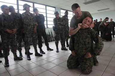 | Keywords: Flickr - Official U.S. Navy Imagery - U.S. Marine skills training..jpg PUERTO CASTILLO Honduras Nov 28 2011 U S Marine Staff Sgt Joel Billingsley a military police platoon sergeant demonstrates how to apply pressure to a pressure point under the chin of Lance Cpl Steven Marshall The Marines are assigned to Special Purpose Marine Air Ground Task Force SPMAGTF which supports Amphibious-Southern Partnership Station 2012 an annual deployment of U S naval assets in the U S Southern Command area of responsibility U S Marine Corps photo by Cpl Josh Pettway/Released 111128-M-IC831-020 http //www flickr com/photos/usnavy/6466282753/ U S Marine skills training 2011-12-06 10 36 http //www flickr com/people/56594044 N06 Official Navy Page from United States of America Cpl Josh Pettway/U S Marine Corps Attribution License XMP-photoshop Source Navy Visual News Service PD-USGov-Military-Navy Official U S Navy Imagery http //flickr com/photos/56594044 N06/6466282753 2012-11-14 08 55 17 cc-by-2 0 Images from United States Navy to check |