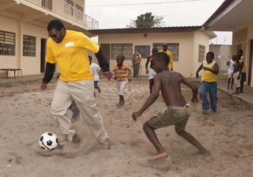 | Keywords: Flickr - Official U.S. Navy Imagery - Sailor plays soccer with Gabonese children during a community service event for Project Handclasp.jpg PORT GENTIL Gabon July 7 2011 Information Systems Technician 1st Class Damion Williams assigned to High Speed Vessel Swift HSV 2 plays soccer with Gabonese children during a community service event for Project Handclasp at the Les Cocotiers Catholic School Swift is in Gabon as part of Africa Partnership Station APS 2011 an international security cooperation initiative facilitated by Commander U S Naval Forces Europe-Africa aimed at strengthening global maritime partnerships through training and collaborative activities in order to improve maritime safety and security in Africa U S Navy photo by Mass Communication Specialist 3rd Class Ian Carver/Released 110707-N-XK513-157 http //www flickr com/photos/usnavy/5958101878/ Sailor plays soccer with Gabonese children during a community service event for Project Handclasp 2011-07-07 04 36 http //www flickr com/people/56594044 N06 Official Navy Page from United States of America MC3 Ian Carver/U S Navy Attribution License XMP-photoshop Source Navy Visual News Service PD-USGov-Military-Navy Official U S Navy Imagery http //flickr com/photos/56594044 N06/5958101878 2012-11-14 15 02 45 cc-by-2 0 Images from United States Navy to check Project Handclasp United States Navy |