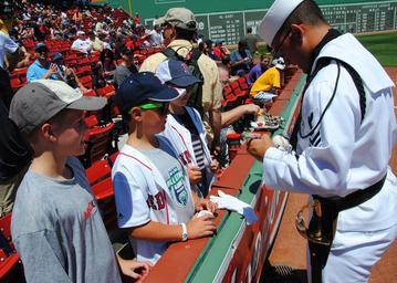 | Keywords: Flickr - Official U.S. Navy Imagery - Aviation Electrician's Mate 2nd Class Anthony Barnardo autographs a baseball for children at Fenway Park..jpg BOSTON July 10 2011 Aviation Electrician's Mate 2nd Class Anthony Barnardo assigned to the color guard aboard USS Constitution autographs a baseball for children at Fenway Park The color guard performed at the Boston Red Sox baseball game to honor Cmdr Tim Cooper the ship ™s 71st commanding officer for his two years of service Cooper will be relieved July 22 U S Navy photo by Mass Communication Specialist 2nd Class Kathryn Macdonald/Released 110710-N-SH953-028 http //www flickr com/photos/usnavy/5934501362/ Aviation Electrician's Mate 2nd Class Anthony Barnardo autographs a baseball for children at Fenway Park 2011-07-10 23 45 http //www flickr com/people/56594044 N06 Official Navy Page from United States of America MC2 Kathryn E Macdonald/U S Navy Attribution License IPTC Source Navy Visual News Service PD-USGov-Military-Navy Official U S Navy Imagery http //flickr com/photos/56594044 N06/5934501362 2012-11-14 14 57 29 cc-by-2 0 Images from United States Navy to check |