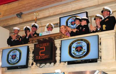 | Keywords: Flickr - Official U.S. Navy Imagery - Maureen Murphy opens the New York Stock Exchange..jpg NEW YORK Oct 2 2012 Maureen Murphy ship sponsor for the guided-missile destroyer Pre-Commissioning Unit PCU Michael Murphy DDG 112 rings the opening bell at the New York Stock Exchange with the ship's commanding officer Cmdr Thomas Shultz and members of the crew Maureen Murphy is the mother of Medal of Honor recipient Lt SEAL Michael Murphy for whom the ship is named The ship and its crew are in New York preparing for the ship's commissioning ceremony Oct 6 U S Navy photo by Mass Communication Specialist 2nd Class John Scorza/Released 121002-N-YB590-085 Join the conversation http //www facebook com/USNavy www facebook com/USNavy http //www twitter com/USNavy www twitter com/USNavy http //navylive dodlive mil navylive dodlive mil http //www flickr com/photos/usnavy/8050664283/ Maureen Murphy opens the New York Stock Exchange 2012-10-02 05 31 http //www flickr com/people/56594044 N06 Official Navy Page from United States of America Mass Communication Specialist 2nd Class John Scorza/U S Navy U S Navy photo PD-USGov-Military-Navy Official U S Navy Imagery http //flickr com/photos/56594044 N06/8050664283 2012-11-12 02 51 32 cc-by-2 0 Images from United States Navy to check |