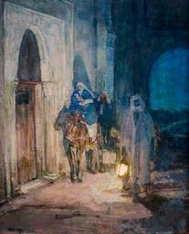 | Keywords: painting fine art outdoor Henry Ossawa Tanner (American, Pittsburgh, Pennsylvania 1859–1937 Paris) 1923, oil on canvas 29 x 26 in. (73.7 x 66 cm) Tanner's eloquent "Flight into Egypt" is a canonical mature work by the increasingly esteemed American artist, who studied in Paris and resided in France. In the mid-1890s Tanner decided to concentrate on biblical themes familiar from his childhood in a household headed by a leader of the African Methodist Church. Tanner developed an increasingly painterly, highly personal style based on empirical observation and inner vision. "Tanner blues," complex layers of glazes, and flat decorative surfaces are keynotes of many of his late canvases. "Flight into Egypt" depicts the Holy Family's clandestine evasion of King Herod's assassins (Matthew 2:12–14), Tanner's favorite biblical story. It expresses his sensitivity to issues of personal freedom, escape from persecution, and migrations of African-Americans from the South to the North. The painting, which reveals a concern for human emotions and an awareness of the mystical meanings of biblical narratives, also manifests Tanner's affliliation with contemporary Symbolism and the religious revival that occurred in response to challenges of the modern era. On the back of this canvas is a study for the prizewinning work Tanner entitled "Christ at the Home of Lazarus," painted about 1912 and now known only from photographs. Photographed at The Met June 2016. Henry Ossawa Tanner (American, Pittsburgh, Pennsylvania 1859–1937 Paris) 1923, oil on canvas 29 x 26 in. (73.7 x 66 cm) Tanner's eloquent "Flight into Egypt" is a canonical mature work by the increasingly esteemed American artist, who studied in Paris and resided in France. In the mid-1890s Tanner decided to concentrate on biblical themes familiar from his childhood in a household headed by a leader of the African Methodist Church. Tanner developed an increasingly painterly, highly personal style based on empirical observation and inner vision. "Tanner blues," complex layers of glazes, and flat decorative surfaces are keynotes of many of his late canvases. "Flight into Egypt" depicts the Holy Family's clandestine evasion of King Herod's assassins (Matthew 2:12–14), Tanner's favorite biblical story. It expresses his sensitivity to issues of personal freedom, escape from persecution, and migrations of African-Americans from the South to the North. The painting, which reveals a concern for human emotions and an awareness of the mystical meanings of biblical narratives, also manifests Tanner's affliliation with contemporary Symbolism and the religious revival that occurred in response to challenges of the modern era. On the back of this canvas is a study for the prizewinning work Tanner entitled "Christ at the Home of Lazarus," painted about 1912 and now known only from photographs. Photographed at The Met June 2016. |