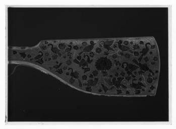 | Keywords: Flintlåsbössa av fransk-nederländsk typ ca 1650, stock av Johan Eberhart Sommer, Künzelsau - Livrustkammaren - 43890-negative.tif Publius Cornelius Scipio Africanus konsul plain text Rund slätborrad pipa av stål godstjocklek vid mynningen 0 8 mm Åttsidig kammaren vid övergången en smal ring kanterna fasade 12 mm bakom ringen vid pipbasen likaså en profilerad vulst på de tre övre faserna Därframför ett dekorfält i stålsnitt l 110 mm nästan hela fältet förgyllt baktill ett snäckliknande ornament med två nedhängande bladfestonger Därframför tre ryttare alla i rustning den i mitten barhuvad fas fältherrestav i h hand den h ryttaren har stav i v hand och fana i h den v ryttaren likaså fana båda hjälmklädda Ornamentfältet framtill avslutad med liknande snäckornament med bladfestonger kompletterade med bladknippe i mitten Rektangulärt svansskruvblad svagt böjt med bladdekor i stålsnitt <br/>Riktmedel Hjärtformigt sikte av förgylld mässing stolpkorn av mässing <br/>Fästning Pipan fäst med krysskruv underifrån dold av avtryckarblecket samt tre pipstift av stål <br/><br/>Flintlås med plant låsbleck delvis något fasade kanter dekor i stålsnitt på låsblecket bakom hanen ryttare i 1600-talsdräkt med fältherrestav i bakgrunden stad till h om hanen tillbakaseende fältherre till häst i bakgrunden tält S-formig platt hane med små rundade käkar överkäken lös graverad och punsad drakdekor rundat koniskt käkskruvhuvud hanskruv med huvud täckande hela hankroppen stålsnittsdekor i form av blomma Fängpanna med liten fals på gaveln sicksackdekor Batteri med rektangulärt eldstål med rundad överkant liten profilering nertill på ryggen Batterifjäder utan studel litet sexflikigt fjäderlöv Nöt utan studel <br/>Fästning Två låsskruvar <br/>C-formig avtryckare Rektangulärt avtryckarbleck <br/><br/>Helstock av valnöt med kolv av tidig fransk typ På kolvens h och undersida snidad dekor på h sida stridsscen täckande hela sidan ryttare i antikiserande rustningar och i förgrunden till v en på marken sittande skäggig krigare som stöttas av två krigare och framför honom en yngre man som håller en häst vid tygeln Längs nederkanten en inskuren latinsk text Scipio cui magnum dives dedit Affrica nomen // pugnantem ad Trebia litus mane patrem samt i ny spalt till h Eximit ingenti pressum discrimine belli // Iam puer et tuta sub statione locat Scipio som det rika Afrika gav ett stort namn giver redan såsom gosse den tidigt vid Trebias strand kämpande fadern ett säkert hägn och borttager honom från det genom ofantliga faror tryckande kriget Längst till höger signering Iohan EberHart // Somer Kolvens undersida svagt rundad två rektangulära fält båda med krigare i helfigur det bakre med en man sedd snett bakifrån huvudet profil h på huvudet ett lejonhuvud med manen hängande ner på ryggen antik rustning och kort mantel h hand håller i oval sköld v arm upplyft och håller i stav Herkules Det främre fältets man likaså sedd snett bakifrån huvudet profil v antik rustning med hjälm o plym ingen mantel gehäng med svärd v hand vilar på höften h håller en på marken stödd sköld Framför de två fälten en i bladverk övergående maskaron Hela stocken i övrigt dekorerad med rankverk av silvertråd med blad och blommor av graverade pärlmorplattor På anslaget i rankverket dessutom 17 fåglar av olika slag däribland en uggla och fem påfåglar i mitten en med uppfälld stjärt Belag av graverat silver bakplåt fäst med sju stålspikar runt spikarna samt mitt på bakplåten graverade blad Två släta rörkor samt näsband med blomdekor Varbygel av stål med korta släta armar främre stolpen kluben och främre armen har del även bakom stolpen litet flikigt löv baktill På bygeln en hillebardiär i låg relief <br/><br/>Tillbehör <br/>Laddstock av stockens trä l 1142 mm framtill skodd med silver l 27 mm med geometrisk dekor I andra änden spår av annat beslag original caption ca 1650 walnut e3 - eldvapen - stock material valnöt - steel e127 - eldvapen - pipa lås och stockbeslag material stål - silver thread e8 - eldvapen - stockdekor material silvertråd - silver e7 - eldvapen - stockbeslag material silver - mother-of-pearl e8 - eldvapen - stockdekor material pärlemor - brass e4 - eldvapen - riktmedel material mässing g 2520 size mm 1162 pipa size mm 1555 LRK Künstlerfamilie Sommer 1985 Scipio cui magnum dives dedit Affrica nomen // pugnantem ad Trebia litus mane patrem // Eximit ingenti pressum discrimine belli // Iam puer et tuta sub statione locat anv e3 - eldvapen - stock; Elin Thegerström Iohan EberHart // Somer anv e8 - eldvapen - stockdekor; Johan Eberhard Sommer Scipio cui magnum dives dedit Affrica nomen // pugnantem ad Trebia litus mane patrem // Eximit ingenti pressum discrimine belli // Iam puer et tuta sub statione locat anv e3 - eldvapen - stock; Elin Thegerström Iohan EberHart // Somer anv e8 - eldvapen - stockdekor; Johan Eberhard Sommer place of origin original filename LN_B07995_010875 55357 inventory number LRK 18794 43890 CC0 Flintlåsbössa av fransk-nederländsk typ ca 1650 stock av Johan Eberhart Sommer Künzelsau - Livrustkammaren - 43890 tif <gallery caption Different images of same object > File Flintlåsbössa av fransk-nederländsk typ ca 1650 stock av Johan Eberhart Sommer Künzelsau - Livrustkammaren - 81541 tif File Flintlåsbössa av fransk-nederländsk typ ca 1650 stock av Johan Eberhart Sommer Künzelsau - Livrustkammaren - 64420 tif File Flintlåsbössa av fransk-nederländsk typ ca 1650 stock av Johan Eberhart Sommer Künzelsau - Livrustkammaren - 72982 tif File Flintlåsbössa av fransk-nederländsk typ ca 1650 stock av Johan Eberhart Sommer Künzelsau - Livrustkammaren - 77798 tif File Flintlåsbössa av fransk-nederländsk typ ca 1650 stock av Johan Eberhart Sommer Künzelsau - Livrustkammaren - 13151 tif File Flintlåsbössa av fransk-nederländsk typ ca 1650 stock