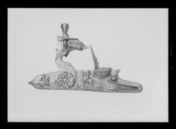 | Keywords: Flintlåsbössa av fransk-nederländsk typ ca 1650, stock av Johan Eberhart Sommer, Künzelsau - Livrustkammaren - 52450.tif Publius Cornelius Scipio Africanus konsul plain text Rund slätborrad pipa av stål godstjocklek vid mynningen 0 8 mm Åttsidig kammaren vid övergången en smal ring kanterna fasade 12 mm bakom ringen vid pipbasen likaså en profilerad vulst på de tre övre faserna Därframför ett dekorfält i stålsnitt l 110 mm nästan hela fältet förgyllt baktill ett snäckliknande ornament med två nedhängande bladfestonger Därframför tre ryttare alla i rustning den i mitten barhuvad fas fältherrestav i h hand den h ryttaren har stav i v hand och fana i h den v ryttaren likaså fana båda hjälmklädda Ornamentfältet framtill avslutad med liknande snäckornament med bladfestonger kompletterade med bladknippe i mitten Rektangulärt svansskruvblad svagt böjt med bladdekor i stålsnitt <br/>Riktmedel Hjärtformigt sikte av förgylld mässing stolpkorn av mässing <br/>Fästning Pipan fäst med krysskruv underifrån dold av avtryckarblecket samt tre pipstift av stål <br/><br/>Flintlås med plant låsbleck delvis något fasade kanter dekor i stålsnitt på låsblecket bakom hanen ryttare i 1600-talsdräkt med fältherrestav i bakgrunden stad till h om hanen tillbakaseende fältherre till häst i bakgrunden tält S-formig platt hane med små rundade käkar överkäken lös graverad och punsad drakdekor rundat koniskt käkskruvhuvud hanskruv med huvud täckande hela hankroppen stålsnittsdekor i form av blomma Fängpanna med liten fals på gaveln sicksackdekor Batteri med rektangulärt eldstål med rundad överkant liten profilering nertill på ryggen Batterifjäder utan studel litet sexflikigt fjäderlöv Nöt utan studel <br/>Fästning Två låsskruvar <br/>C-formig avtryckare Rektangulärt avtryckarbleck <br/><br/>Helstock av valnöt med kolv av tidig fransk typ På kolvens h och undersida snidad dekor på h sida stridsscen täckande hela sidan ryttare i antikiserande rustningar och i förgrunden till v en på marken sittande skäggig krigare som stöttas av två krigare och framför honom en yngre man som håller en häst vid tygeln Längs nederkanten en inskuren latinsk text Scipio cui magnum dives dedit Affrica nomen // pugnantem ad Trebia litus mane patrem samt i ny spalt till h Eximit ingenti pressum discrimine belli // Iam puer et tuta sub statione locat Scipio som det rika Afrika gav ett stort namn giver redan såsom gosse den tidigt vid Trebias strand kämpande fadern ett säkert hägn och borttager honom från det genom ofantliga faror tryckande kriget Längst till höger signering Iohan EberHart // Somer Kolvens undersida svagt rundad två rektangulära fält båda med krigare i helfigur det bakre med en man sedd snett bakifrån huvudet profil h på huvudet ett lejonhuvud med manen hängande ner på ryggen antik rustning och kort mantel h hand håller i oval sköld v arm upplyft och håller i stav Herkules Det främre fältets man likaså sedd snett bakifrån huvudet profil v antik rustning med hjälm o plym ingen mantel gehäng med svärd v hand vilar på höften h håller en på marken stödd sköld Framför de två fälten en i bladverk övergående maskaron Hela stocken i övrigt dekorerad med rankverk av silvertråd med blad och blommor av graverade pärlmorplattor På anslaget i rankverket dessutom 17 fåglar av olika slag däribland en uggla och fem påfåglar i mitten en med uppfälld stjärt Belag av graverat silver bakplåt fäst med sju stålspikar runt spikarna samt mitt på bakplåten graverade blad Två släta rörkor samt näsband med blomdekor Varbygel av stål med korta släta armar främre stolpen kluben och främre armen har del även bakom stolpen litet flikigt löv baktill På bygeln en hillebardiär i låg relief <br/><br/>Tillbehör <br/>Laddstock av stockens trä l 1142 mm framtill skodd med silver l 27 mm med geometrisk dekor I andra änden spår av annat beslag original caption ca 1650 walnut e3 - eldvapen - stock material valnöt - steel e127 - eldvapen - pipa lås och stockbeslag material stål - silver thread e8 - eldvapen - stockdekor material silvertråd - silver e7 - eldvapen - stockbeslag material silver - mother-of-pearl e8 - eldvapen - stockdekor material pärlemor - brass e4 - eldvapen - riktmedel material mässing g 2520 size mm 1162 pipa size mm 1555 LRK Künstlerfamilie Sommer 1985 Scipio cui magnum dives dedit Affrica nomen // pugnantem ad Trebia litus mane patrem // Eximit ingenti pressum discrimine belli // Iam puer et tuta sub statione locat anv e3 - eldvapen - stock; Elin Thegerström Iohan EberHart // Somer anv e8 - eldvapen - stockdekor; Johan Eberhard Sommer Scipio cui magnum dives dedit Affrica nomen // pugnantem ad Trebia litus mane patrem // Eximit ingenti pressum discrimine belli // Iam puer et tuta sub statione locat anv e3 - eldvapen - stock; Elin Thegerström Iohan EberHart // Somer anv e8 - eldvapen - stockdekor; Johan Eberhard Sommer place of origin original filename LN_B07996_010876 55357 inventory number LRK 18794 52450 CC0 Flintlåsbössa av fransk-nederländsk typ ca 1650 stock av Johan Eberhart Sommer Künzelsau - Livrustkammaren - 52450-negative tif <gallery caption Different images of same object > File Flintlåsbössa av fransk-nederländsk typ ca 1650 stock av Johan Eberhart Sommer Künzelsau - Livrustkammaren - 43890 tif File Flintlåsbössa av fransk-nederländsk typ ca 1650 stock av Johan Eberhart Sommer Künzelsau - Livrustkammaren - 81541 tif File Flintlåsbössa av fransk-nederländsk typ ca 1650 stock av Johan Eberhart Sommer Künzelsau - Livrustkammaren - 64420 tif File Flintlåsbössa av fransk-nederländsk typ ca 1650 stock av Johan Eberhart Sommer Künzelsau - Livrustkammaren - 72982 tif File Flintlåsbössa av fransk-nederländsk typ ca 1650 stock av Johan Eberhart Sommer Künzelsau - Livrustkammaren - 77798 tif File Flintlåsbössa av fransk-nederländsk typ ca 1650 stock
