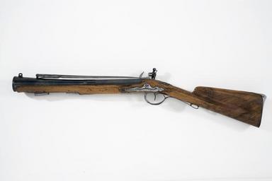 | Keywords: Flintlåsmuskedunder, v sida - Livrustkammaren - 31108.jpg Rund vid kammaren åttsidig blånerad pipa kraftigt utvidgad mot mynningen kanterna på kammarens främre del fasade vid övergången mellan den kantiga och runda delen en konvex och en konkav ring På kammaren punsad rankdekor delvis otydlig med rester av förgyllning På kammarens undersida stämplat A och AR Svansskruv med oblånerat blad framför krysskruvens hål hållare för bajonetten <br/>Fästning Två häften Pipan fäst med blånerad krysskruv samt två pipstift av stål <br/><br/>Flintlås med välvt låsbleck fasade kanter vid batterifjädern Graverad signatur på nederkanten RAINKIN Starkt svängd s-formig hane med blånerad lös överkäke blånerad päronformig käkskruv med genomgående hål och plan översida med skruvspår Rundad fängpanna med fals hög eldskärm Batteri med eldstål med åsad rygg batterifjäder med rulled Blånerad avtryckarstång <br/>Fästning och avtryckare Två blånerade låsskruvar <br/>Böjd avtryckare <br/><br/>Helstock av valnöt med kolv med 8-formigt tvärsnitt snidad rankdekor vid svansskruvbladet Beslag av stål bakplåt med konturerad tunga på kolvryggen två skruvar Helt välvt konturerat sidbleck med försänkta spetsar Två rundade rörkor konturerad stolpe förstärkningsplatta vid övergången Bygeln baktill övergående i lång delvis fri bakre arm med konturerad avslutning original caption flintlåsmuskedunder - LRK 10006 v sida<br/> Nyckelord Flintlåsmuskedunder Föremålsbild ca other date - 1750 1800 walnut e3 - eldvapen - stock material valnöt - steel Färg blå e127 - eldvapen - pipa lås och stockbeslag material stål size mm 819 g 2770 size mm 44 inre size mm 415 pipa LRK A anv e1 - eldvapen - pipa; Rainkin A R anv e1 - eldvapen - pipa; Rainkin RAINKIN anv e2 - eldvapen - lås; Rainkin A R anv e1 - eldvapen - pipa; Rainkin A anv e1 - eldvapen - pipa; Rainkin RAINKIN anv e2 - eldvapen - lås; Rainkin place of origin original filename lm_dig2180 46536 inventory number LRK 10006 31108 CC-BY-SA Göran Schmidt <gallery caption Different images of same object > File Flintlåsmuskedunder - Livrustkammaren - 65347 jpg </gallery> Göran Schmidt Blunderbuss images from Livrustkammaren Media contributed by LSH dim-with multiple size templates Media contributed by LSH unmatched creator Media contributed by LSH unmatched keyword Color images from Livrustkammaren Media contributed by LSH 2013-10 |