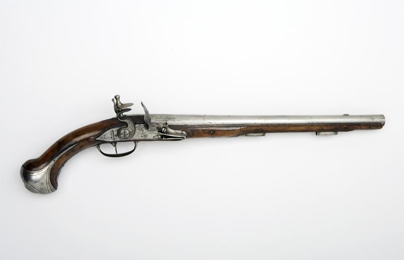 | Keywords: Flintlåspistol - Livrustkammaren - 5420.jpg Rund slätborrad pipa av stål med kantig kammare graverad dekor i form av framåtriktade flikar På ovansidan graverad signatur MAZELIER A PARIS Svagt böjt svansskruvblad med baktill rundat ändblad graverade kantlister och bladranka På kammarens undersida en oval stämpel N P Stöckel pl VI mellan bokstäverna en femuddig stjärna på insidan tandad kantring <br/>Riktmedel Knoppkorn av silver <br/>Fästning Två häften pipan fäst med krysskruv samt ett pipstift av stål <br/><br/>Flintlås av stål med plant låsbleck fasade kanter försänkt bakspets Graverade kantlister trofégrupper nedanför fängpannan signatur MAZELIER // A // PARIS på kanten RVE DE SEINE S-formig hane med fasade kanter rankdekor på kropp och hanskruv mot ringpunsad bakgrund Ovala käkar överkäken lös större än underkäken käkskruv med balusterformigt huvud Kantig fängpanna med fals batteri med plant lock med fasade kanter eldstål med plan konturerade ryggås fot med uppsvängd ände Batterifjäder med fasade kanter treflikigt fjäderlöv <br/>Fästning Två låsskruvar <br/>Svagt böjd avtryckare Konturerat avtryckarbleck <br/><br/>Helstock av valnöt med beslag av stål Kolvkappa med långa flikar kantlist och oval plan centrumplatta med brett fasad kant graverad dekor på plattan antikiserande krigarbyster runt plattan bladstav Genombrutet sidbleck med oval mittplatta med krigare En + en kantig rörka slätspets Varbygel med plant 8-formig framarm med fasade kanter avslutning i form av vas med blad bygel med kantlister och graverad dekor som på pipan Lång bakre arm med fasade kanter original caption flintlåspistol - LRK 4669<br/> Nyckelord Flintlåspistol Pistol Föremålsbild ca other date - 1710 1730 steel e127 - eldvapen - pipa lås och stockbeslag material stål - silver e4 - eldvapen - riktmedel material silver - walnut e3 - eldvapen - stock material valnöt size mm 555 size mm 375 pipa size mm 120 g 1000 LRK Basutställning N P o däremellan femuddig stjärna i oval Stöckel pl VI anv e1 - eldvapen - pipa; Nicolas Pierron MAZELIER A PARIS anv e1 - eldvapen - pipa; Mazelier MAZELIER A PARIS RVE DE SEINE anv e2 - eldvapen - lås; Mazelier place of origin Paris original filename lm_dig2158 41202 inventory number LRK 4669 5420 CC-BY-SA Göran Schmidt Göran Schmidt Flintlock pistol Images from Livrustkammaren Media contributed by LSH dim-with multiple size templates Media contributed by LSH unmatched creator Color images from Livrustkammaren Media contributed by LSH 2013-10 |