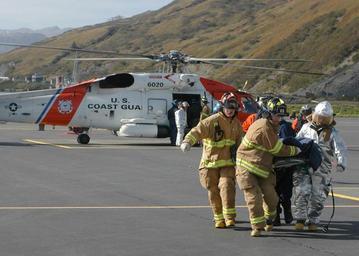 | Keywords: FLOATPLANE ACCIDENT DVIDS1076255.jpg en KODIAK Alaska Sept 23 2004 --Crewmen from the Coast Guard Fire Department Coast Guard air station Kodiak and Kodiak City Fire Department carry a critically injured woman from an HH-60 Jayhawk helicopter to a triage area before loading her into an awaiting ambulance The woman was taken to Providence Kodiak Island Medical Center of treatment The woman and six others were injured in a floatplane crash in Hallo Bay earlier today USCG photo by PA3 Sara Raymer 2004-09-23 https //www dvidshub net/image/1076255 1076255 2013-12-11 17 15 KODIAK AK US PD-USGov Air Station Kodiak Images from DoD uploaded by Fæ |