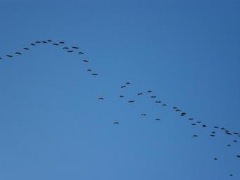 Keywords: flock flocking geese migrate flight sky birds wings fowl outdoors migratory formation fly waterfowl blue wild migration wildlife goose flying nature