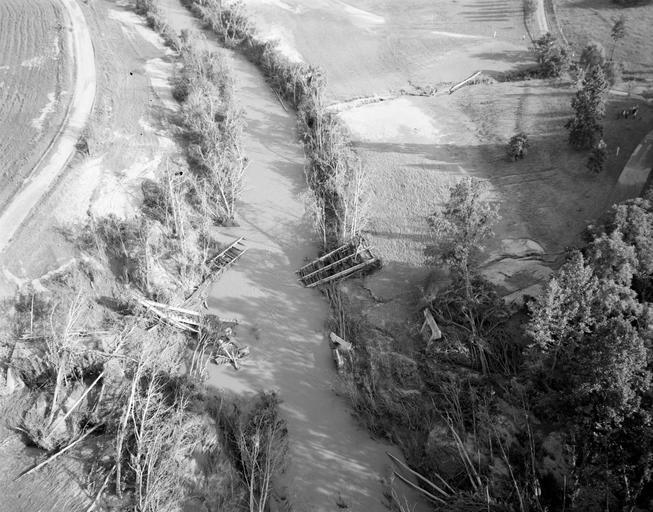 | Keywords: richmond va usa hurricane camille hurricanecamille flood flooding damage natural disaster naturaldisaster virginia richmond va usa virginiarichmondvausa blackandwhite monochrome outdoor texture black and white Three miles east of Schuyler, the bridge at the intersection of Rt. 722 and Rt. 602 has been torn apart by the storm surge. Broken piers and mangled steel cross-beams in center. Located on Rockbridge River in Nelson County. No. 69-2082, Virginia Governor's Negative Collection, Library of Virginia. Three miles east of Schuyler, the bridge at the intersection of Rt. 722 and Rt. 602 has been torn apart by the storm surge. Broken piers and mangled steel cross-beams in center. Located on Rockbridge River in Nelson County. No. 69-2082, Virginia Governor's Negative Collection, Library of Virginia. |