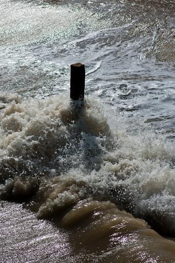 Keywords: flood tide spray wave timber post north sea coast foam