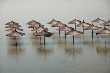 Keywords: flood umbrellas brown water parasol natural wood reed