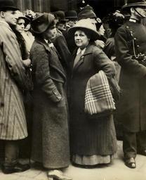 | Keywords: the women's library thewomenslibrary women suffrage politics hires monochrome 7JCC/O/02/063 Photograph, printed, paper, monochrome, Flora Drummond carrying a travel rug waiting outside court with others; printed inscription on reverse 'General Press Photo Company, 32 Bream's Buildings, Chancery Lane. Telegrams 'Illupresto London', Telephone City. Please acknowledge GPP' 7JCC/O/02/063 Photograph, printed, paper, monochrome, Flora Drummond carrying a travel rug waiting outside court with others; printed inscription on reverse 'General Press Photo Company, 32 Bream's Buildings, Chancery Lane. Telegrams 'Illupresto London', Telephone City. Please acknowledge GPP' |