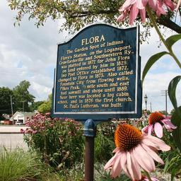 | Keywords: Flora, Indiana historical marker.png Flora Indiana It reads <blockquote> <p>Flora</p> <p>The Garden Spot of Indiana</p> <p>Flora's Station on the Logansport Crawfordsville and Southwestern Ry was platted in 1872 for John Flora on land entered by him in 1829 Ino Post Office established 1872 changed to Flora in 1873 Also called Fountain City from flowing wells Pikes Peak ½ mile south and east had sawmill and shops until 1889 Near here was located a log cabin school and in 1876 the first church St Paul's Lutheran was built </p> <p><small>Erected by Carroll County Historical Society 1972</small></p> </blockquote> Own Huw Williams Huwmanbeing 2009-07-26 40 32 49 8 N 86 31 27 8 W region US-IN_heading NW Files by User Huwmanbeing 2009 in Indiana Carroll County Indiana Unidentified Echinacea Historical markers in Indiana Summer in Indiana |