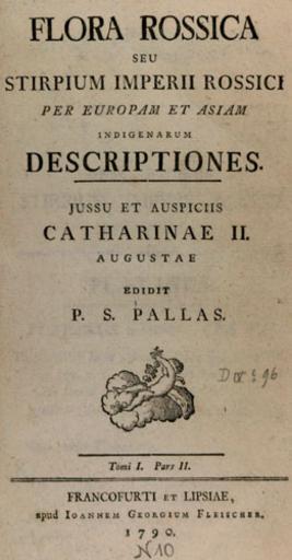 | Keywords: FLORA ROSSICA seu Stirpium Imperii Rossici per Europam et Asiam - 1790.jpg  en Cover page book «Flora rossica» ru Титульный лист книги «Flora rossica» http //www narodnz co nz/elessar/2007/07/05/flora-rossica-seu-stirpium-imperii-rossici-per-europam-et-asiam-1790/ Peter Simon Pallas 1790 PD-old-100 Peter Simon Pallas |