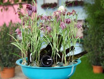Keywords: floral arrangement shell decoration flower bowl bottles