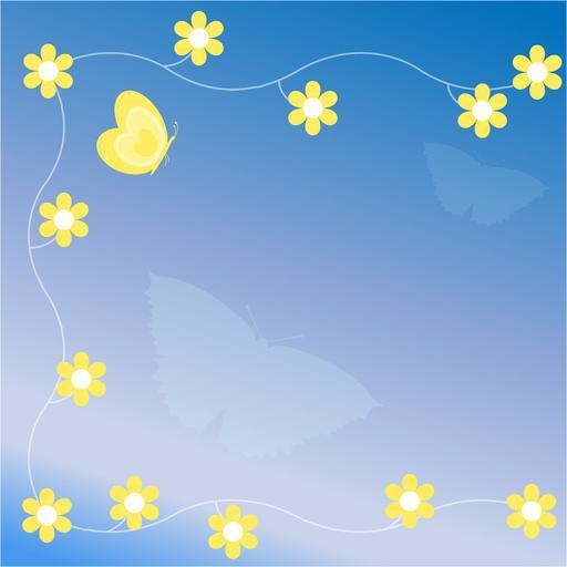 Keywords: floral flowers frame butterfly butterflies blue yellow illustration design background art