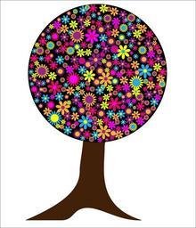 Keywords: tree floral flowers flowery colorful retro art illustration fun design