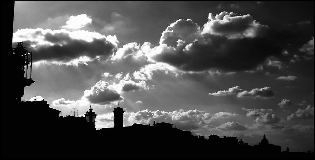 Keywords: florence city view towers balcony silhouette back light atmospheric light and shadow dramatic sky mood clouds black and white black white cloudiness cloudy drama dark sunbeam clouds form weather mood atmosphere travel holidays heaven mood