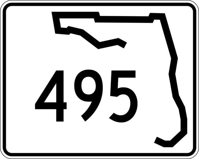 | Keywords: Florida 495.svg 30 in by 24 in 750 mm by 600 mm Florida State Road shield made to the specifications of the http //www dot state fl us/rddesign/rd/RTDS/17355s1-12of12 pdf sign detail Uses the http //www triskele com/fonts/index html Roadgeek 2005 fonts United States law does not permit the copyrighting of typeface designs and the fonts are meant to be copies of a U S Government-produced work anyway The outside border has a width of 1 1/16 in and a color of black so it shows up; in reality signs have no outside border Note that the drawing does not provide the border width or curve radii The previous page does but seems very inaccurate Thus those measurements are approximated from the drawing The state outline is extracted from the PDF and cleaned up to make the inside match the outside own SPUI spuiother Florida State Road shields 495 495 number |