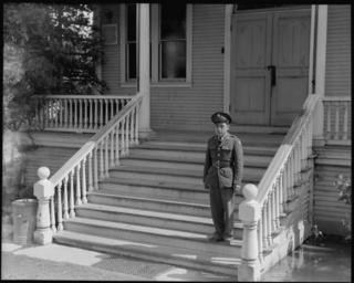 | Keywords: Florin, California. This soldier, age 23, volunteered for service in the army July 10, 1942. He is . . . - NARA - 537850.jpg Scope and content The full caption for this photograph reads Florin California This soldier age 23 volunteered for service in the army July 10 1942 He is now stationed at Camp Leonard Wood Missouri He obtained a furlough to return home to assist his mother and family in preparing for evacuation from the west coast He is the youngest of six children two of whom are volunteers for the United States Army Here he is shown on the steps of the Buddhist church Sixty young men from the congregation of this church are in the service Last March there was a reception for seventeen young Buddhists entering the service at one time General notes 537850 Local identifier 210-G-C539 Department of the Interior War Relocation Authority 02/16/1944 - 06/30/1946 NARA-Author Lange Dorothea 1895-1965 Photographer 1372774 <br /> Still Picture Records Section Special Media Archives Services Division NWCS-S National Archives at College Park 8601 Adelphi Road College Park MD 20740-6001 1942-05-12 Record group Record Group 210 Records of the War Relocation Authority 1941 - 1989 Record group ARC 537 Central Photographic File of the War Relocation Authority compiled 1942 - 1945 Series ARC 536000 File unit File unit ARC Variant control numbers NAIL Control Number NWDNS-210-G-C539 Other versions <gallery> File Florin _California _This_soldier _age_23 _volunteered_for_service_in_the_army_July_10 _1942 _He_is_ _ _ _-_NARA_-_537850 tif tif File Florin _California _This_soldier _age_23 _volunteered_for_service_in_the_army_July_10 _1942 _He_is_ _ _ _-_NARA_-_537850 jpg jpg </gallery> NARA-cooperation PD-USGov Dorothea Lange Japanese American internment processing in Florin Buddhism in the United States |