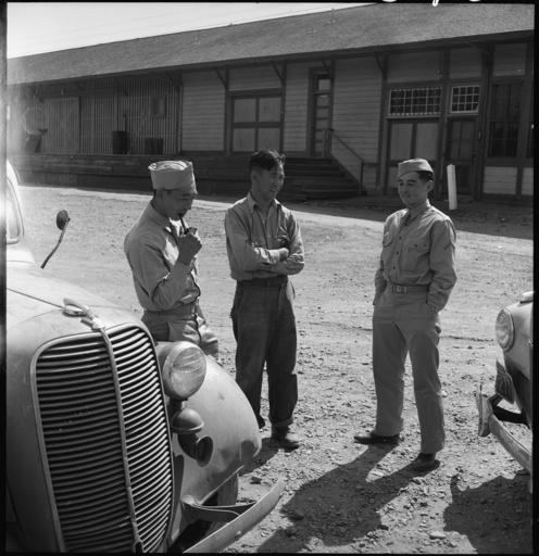 | Keywords: Florin, California. Two of the nine soldiers of Japanese ancestry, now in the Army of the United St . . . - NARA - 537856.jpg Scope and content The full caption for this photograph reads Florin California Two of the nine soldiers of Japanese ancestry now in the Army of the United States who were granted furloughs in order that they might assist their families get ready for the evacuation of all persons of Japanese ancestry from their homes on the west coast Here they are seen chatting with friends of their high school days General notes 537856 Local identifier 210-G-C546 Department of the Interior War Relocation Authority 02/16/1944 - 06/30/1946 NARA-Author Lange Dorothea 1895-1965 Photographer 1372774 <br /> Still Picture Records Section Special Media Archives Services Division NWCS-S National Archives at College Park 8601 Adelphi Road College Park MD 20740-6001 1942-05-10 Record group Record Group 210 Records of the War Relocation Authority 1941 - 1989 Record group ARC 537 Central Photographic File of the War Relocation Authority compiled 1942 - 1945 Series ARC 536000 File unit File unit ARC Variant control numbers NAIL Control Number NWDNS-210-G-C546 Other versions <gallery> File Florin _California _Two_of_the_nine_soldiers_of_Japanese_ancestry _now_in_the_Army_of_the_United_St_ _ _ _-_NARA_-_537856 tif tif File Florin _California _Two_of_the_nine_soldiers_of_Japanese_ancestry _now_in_the_Army_of_the_United_St_ _ _ _-_NARA_-_537856 jpg jpg </gallery> NARA-cooperation PD-USGov Dorothea Lange Japanese American internment processing in Florin |