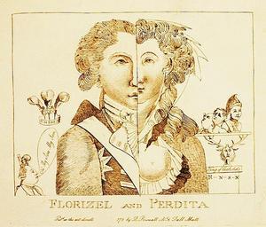 | Keywords: Florizel and Perdita 1783.jpg en Florizel and Perdita David Garrick's adaptation of Shakespeare's The Winter's Tale Etching of a bust portrait divided vertically by a line down the center of the face depicting the Prince of Wales later George IV of the United Kingdom 1762-1830 as Florizel and his mistress Mary Robinson 1758-1800 as Perdita Caption on the left Oh my son my son said by George III Caption on the right King of cuckolds LOC-image cph 3g07102 B Pownall n° 6 Pall Mall London publisher 1783-10-16 PD-US No known restrictions on publication PD-US PD-old-100 1783 cartoons Caricatures of George IV of the United Kingdom Mary Robinson poet Caricatures of the United Kingdom |