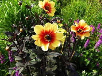 Keywords: flower bed art garden spring flowers sprinkle bumblebees orange yellow