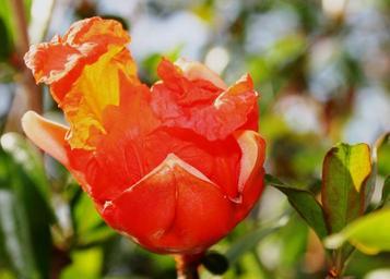 Keywords: flower bloom orange bright unfolding unfurling fresh spring fruit green leaves