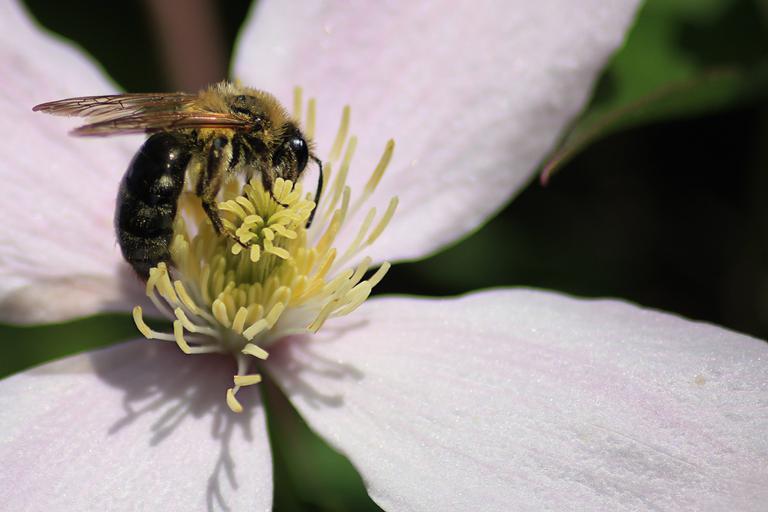 Keywords: flower blossom bloom bloom pink plant pistil yellow bee sprinkle pollen nature flora beautiful color flowers flying insects macro