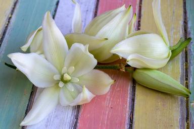 Keywords: flower blossom bloom white close background white flowers yucca yucca filamentosa