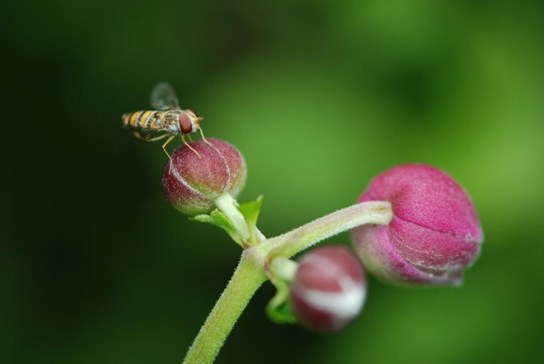Keywords: flower bouquet white anemones nature green water hoverfly flowerfly pink