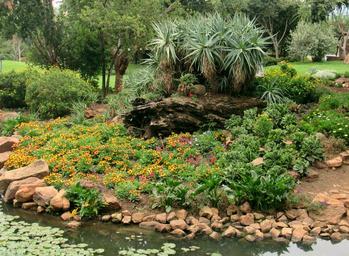 Keywords: flower bridge water pond river rocks lawn trees floral nature garden blossom spring summer petals bloom botany gardening green plant botanical seasonal leaf natural