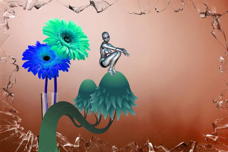 Keywords: flower card mushroom invitation stationery birthday party poster robot woman female fantasy design invitation card greeting card pop art advertisement girl
