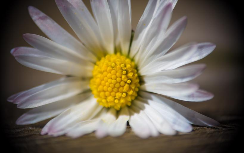 Keywords: flower daisy close pick flowers wood table