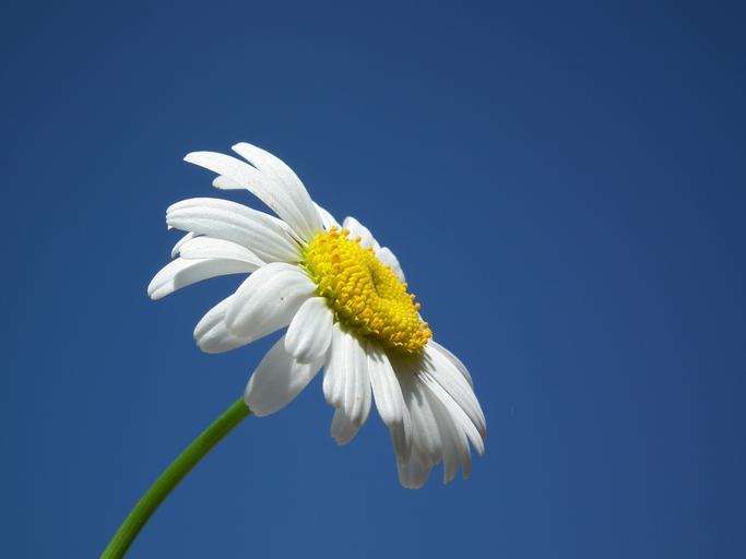 Keywords: flower daisy white flowers day sky blue petal sheet bloom summer yellow closeup white flowers chamomile blue sky