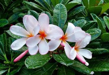 Keywords: flower dew rain wet plumeria plants nature outdoor spring floral bloom