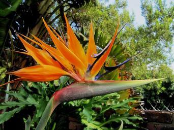 Keywords: flower exotic africa south africa indigenous national flower orange spiked petals fan shaped tubular stem strong bright regal crane lily star shaped bird of paradise