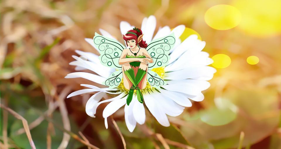Keywords: flower fee daisy blossom bloom white fantasy figure fantasy dreamland fantasyland painting digital painting