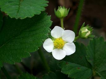 Keywords: flower leaves strawberry bud white garden strawberry wild strawberry bloom green leaf garden green
