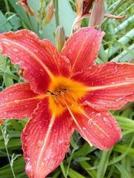 Keywords: flower lily garden red orange drops dew