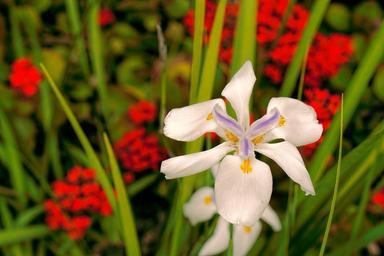 Keywords: flower lily white red spring horizontal blossom foreground garden nature plant petal open