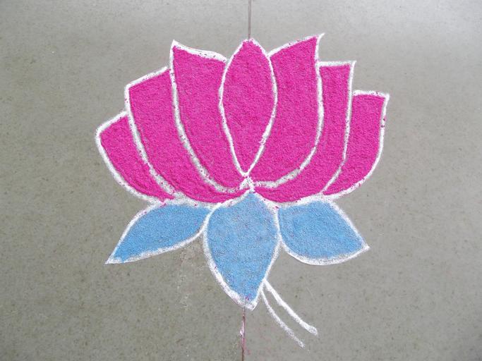 Keywords: flower lotus drawing depiction creative creativity artwork art design chalk india floral plant herb leaf