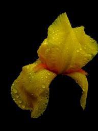 Keywords: flower macro iris yellow nature spring blossomed contrast drop of dew light and shade