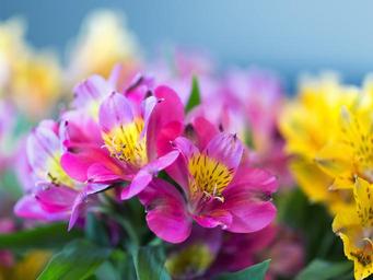 Keywords: flower macro nature blossom flora pink petals bloom yellow purple bright close green blooming plant botanical vibrant colorful natural detail