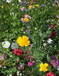 Keywords: flower meadow yellow nature flowers assorted flowers bees summer colorful red plant green sunny light